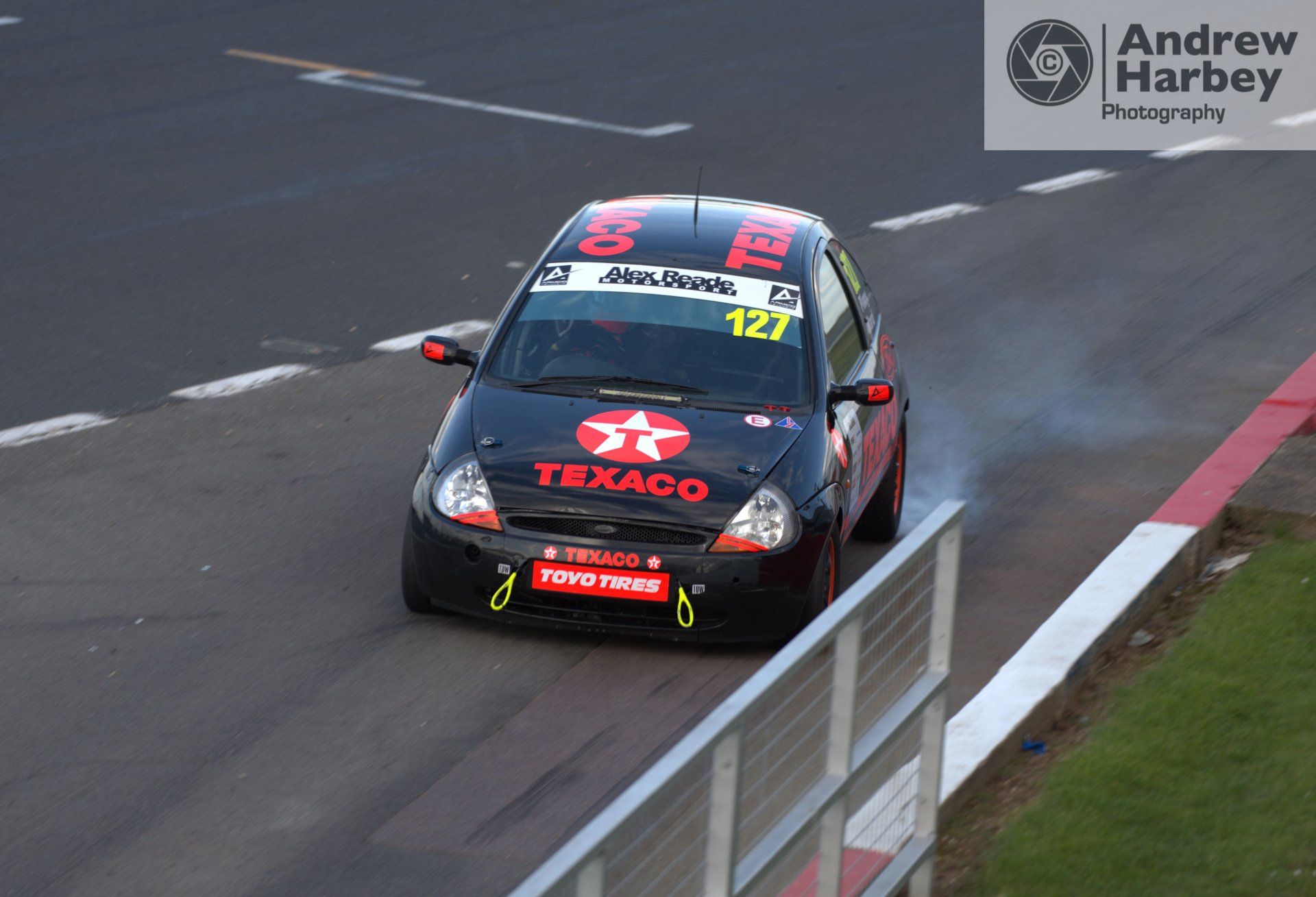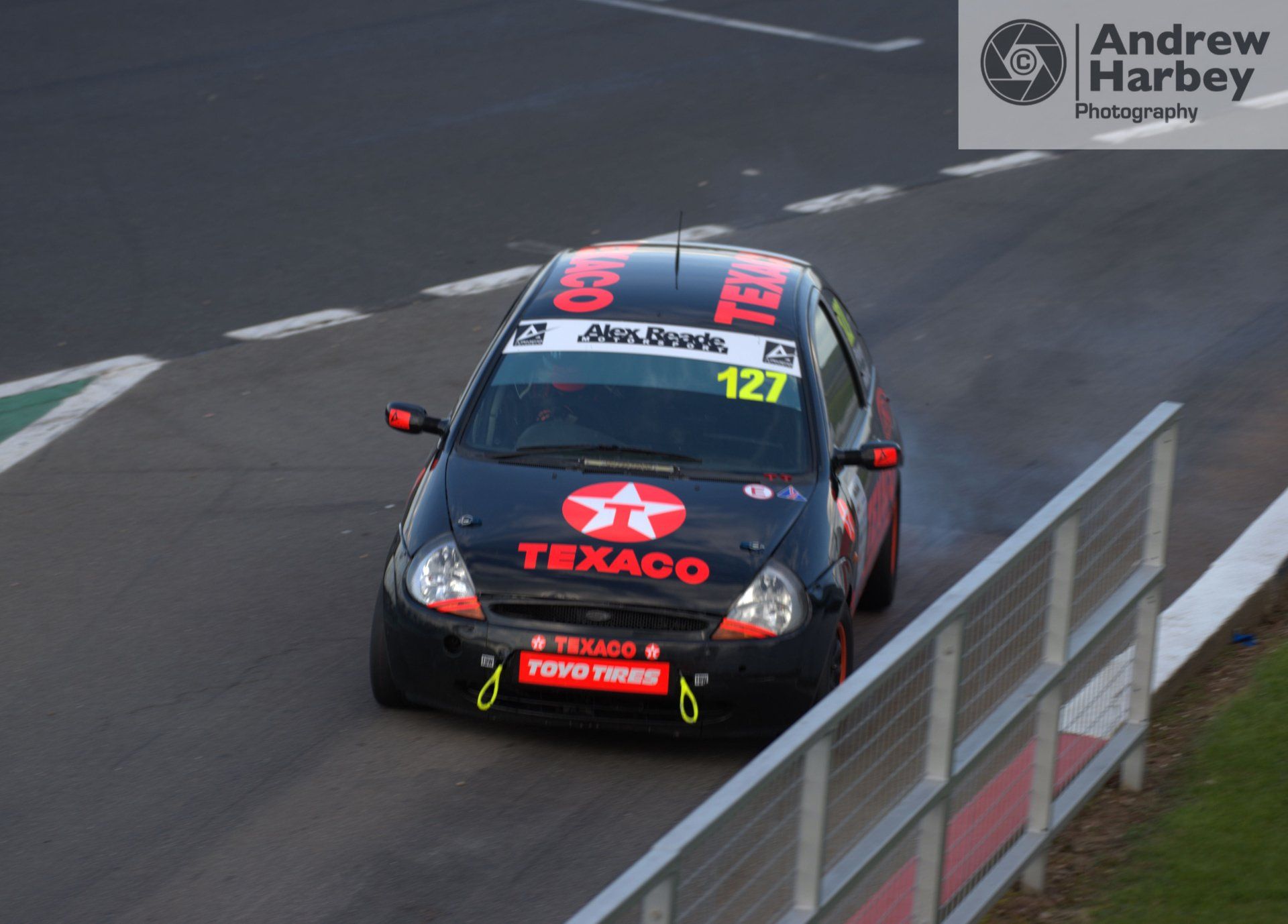 Other drivers were also making visits to the pits, including this well-made Texaco-liveried Ka that locked the rear left as it was braking for the line ! Thankfully the driver managed to control it and avoid an accident – it made for a nice sequence of photos.
