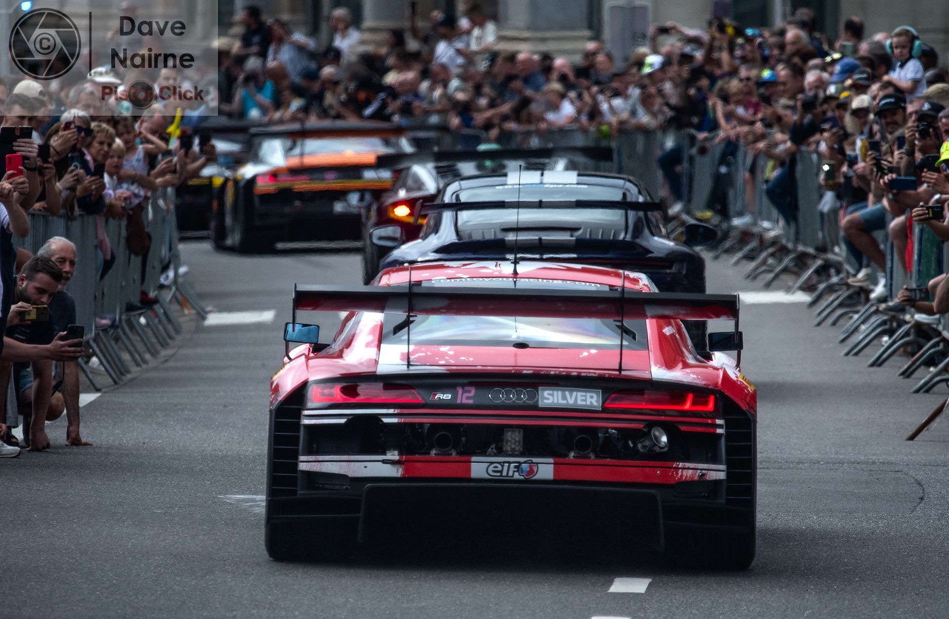 A challenging environment to shoot the cars, as getting a clear shot with limited intrusion of people, is not easy. Even so, I came away with a few decent images as people wandered off into the surrounding bars awaiting the cars return to the circuit.