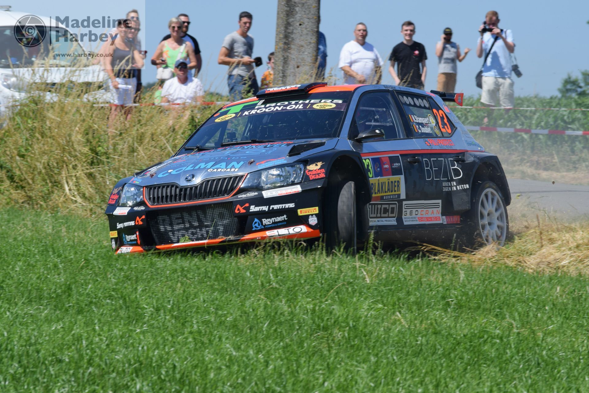 Saturday morning dawned bright with a 30 degree day in prospect (just like our last time here). There’s little in the way of shade on most of the stages although a gentle breeze did assist from time to time. First stage was just down the road at Hollebeke near a former monastery. A tight left followed by a right into a long left with an option to cut on the final element.