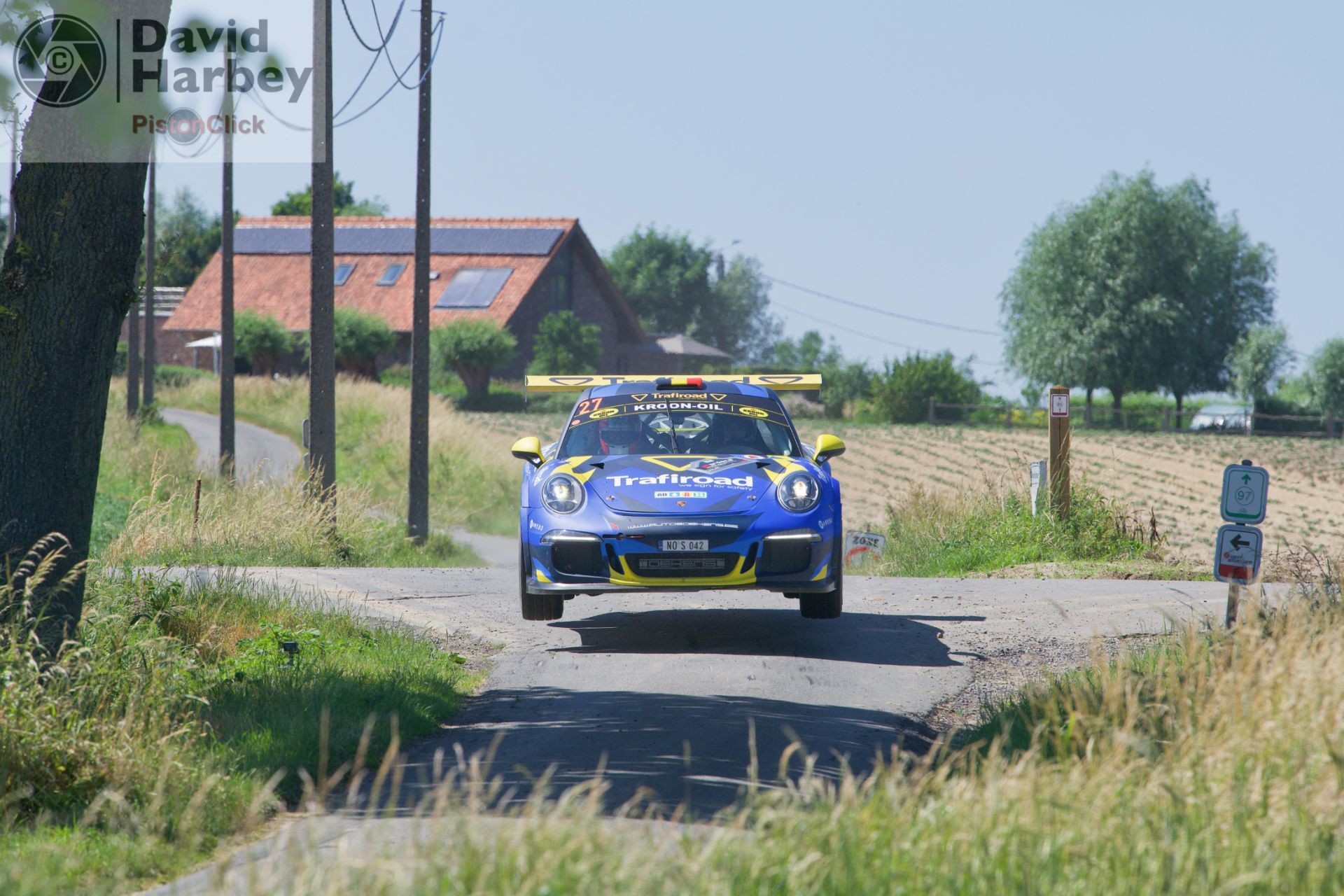 Having studied the programme, we decided that the jump on Dikkebus should be our afternoon stage. Arriving in good time we found a good spot in a corn field with a head on shot of the cars as they jumped - or should that be yumped ? With Media tabards either side of us, it seemed as if we were in the right place.