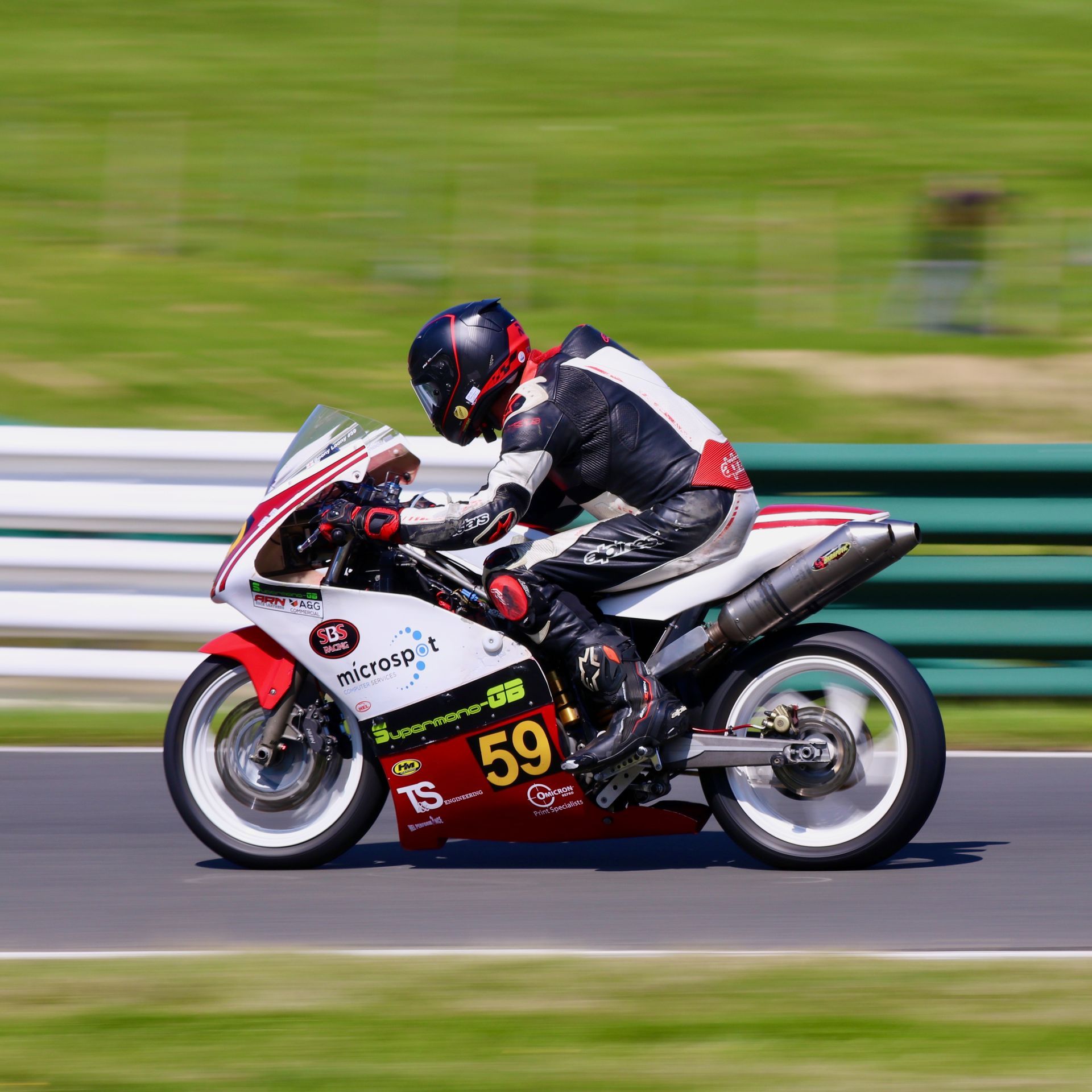 Fortunately, after being checked over by the circuit’s medics he was passed fit to race again, but his bike looked decidedly “second-hand”, and he was forced to use his “spare” bike in his final race of the weekend. Unfortunately, mechanical problems, revealing themselves as a plume of blue smoke, brought his race to a premature end, and he was black flagged.