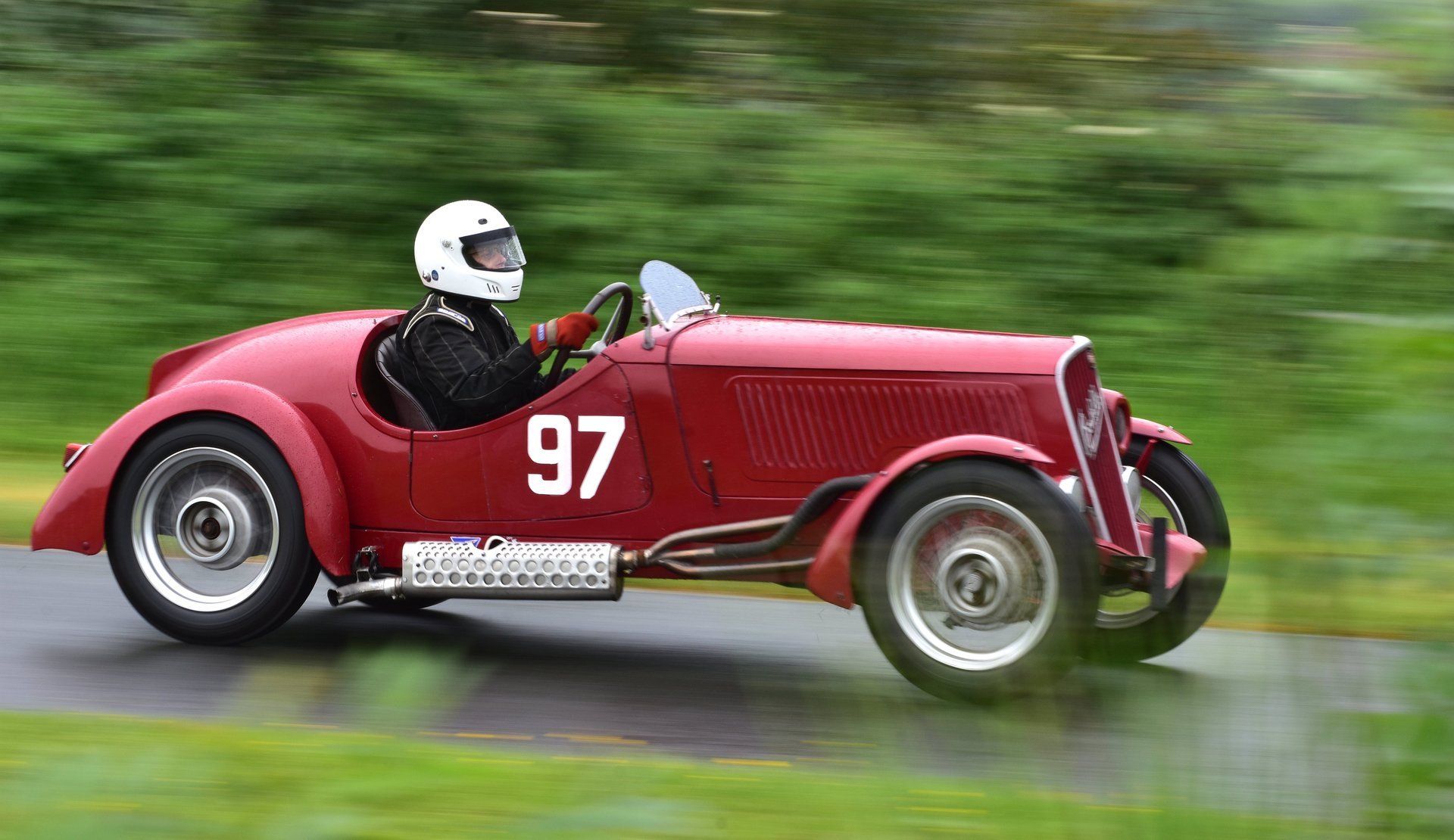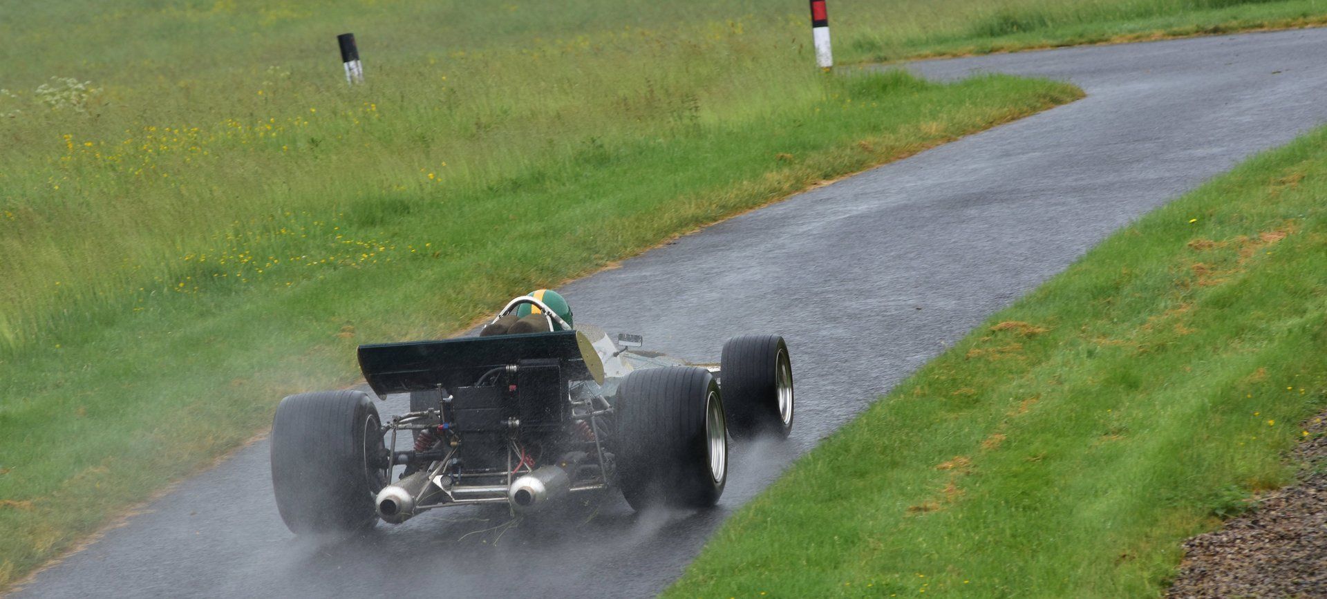 One advantage of photographing vintage cars is they don’t go very fast and as it was raining all day the drivers were taking it steady. When I say steady, one did launch its self into an adjoining field; on a good day the top cars can complete the course in less than a minute.