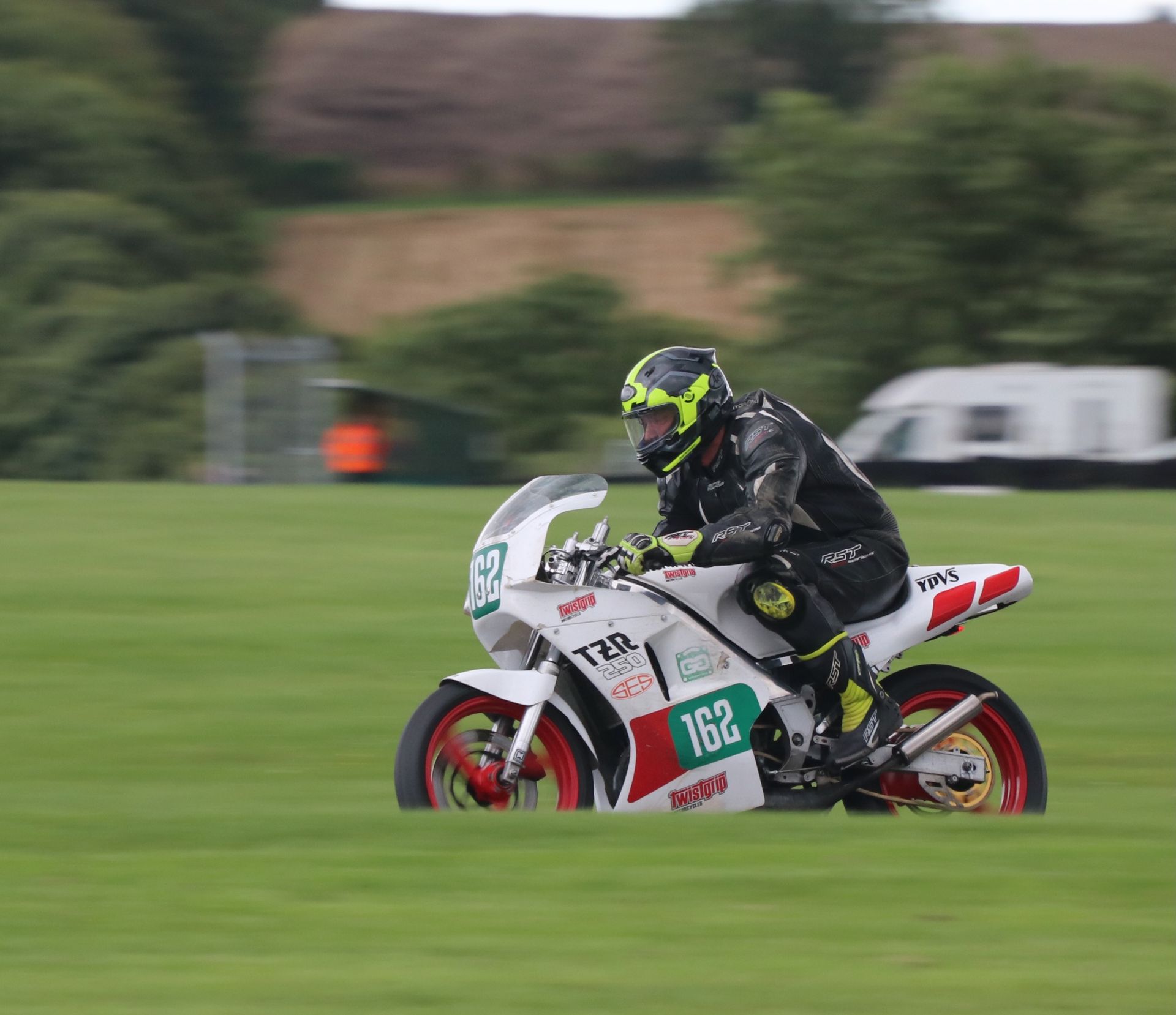 With everyone just about dried out from the previous day’s downpours, Sunday’s race day action, set to include 17 races, including Saturday’s F2 scheduled opener, which was the victim of Cadwell Park’s 6.30 curfew the previous day, got underway on time.