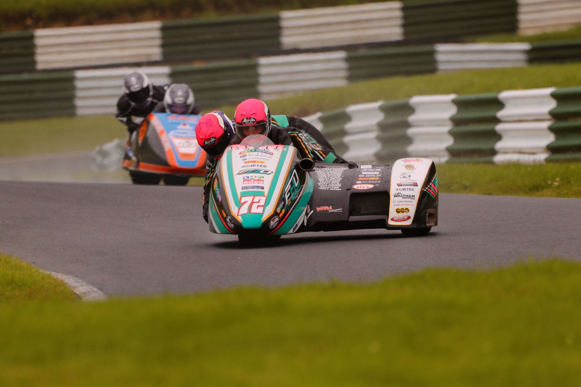 Pushing hard in a close third place in the damp conditions were F2 “aces” Pete Founds and Jevan Walmsley. As the race reached one third distance, Luke Williams and Jason Pitt (#91), after a poor start made it a close foursome, with only a couple of seconds covering the four outfits.