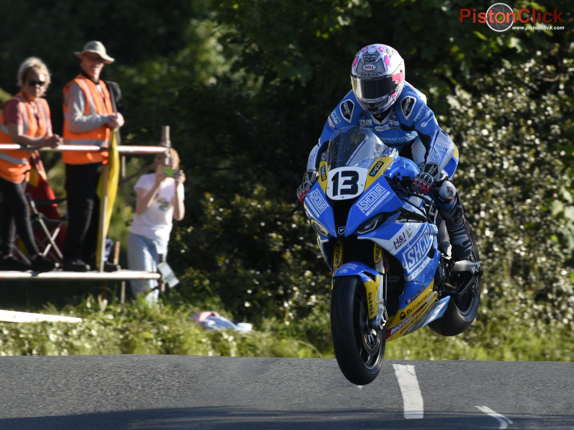 All the other riders were landing on the opposite side of the road whereas Hicky was brushing the grass on the bank we were on. It really made me jump back first time he did it!