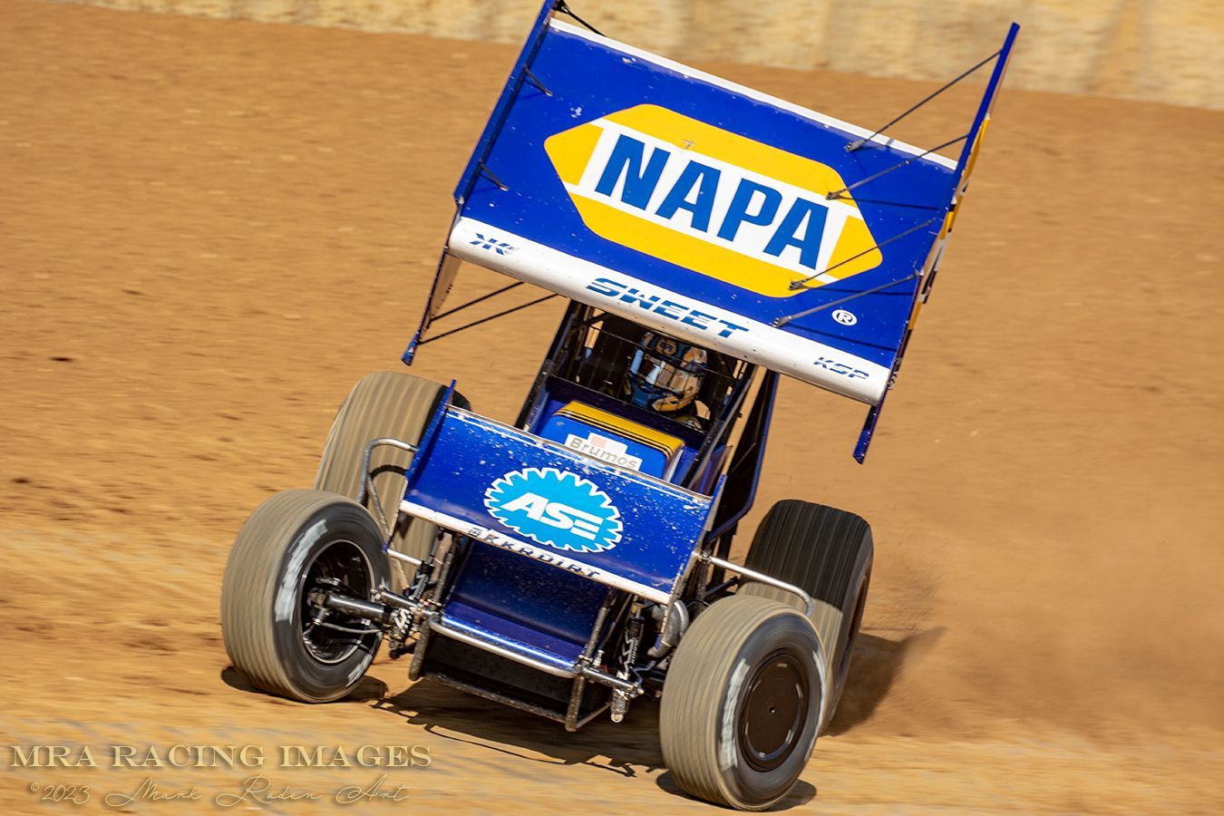 The opening Ceremonies consisted of driver introductions and some trackside interviews, and then came the heat races. Before the first heat I moved back to the turn 2 dirt bank which seemed to be a great place to get photos of passing. At the start I captured the lap 1 pass that Donny Schatz put on Macedo to get things going. He led all the way to the checkered to advance to the feature.