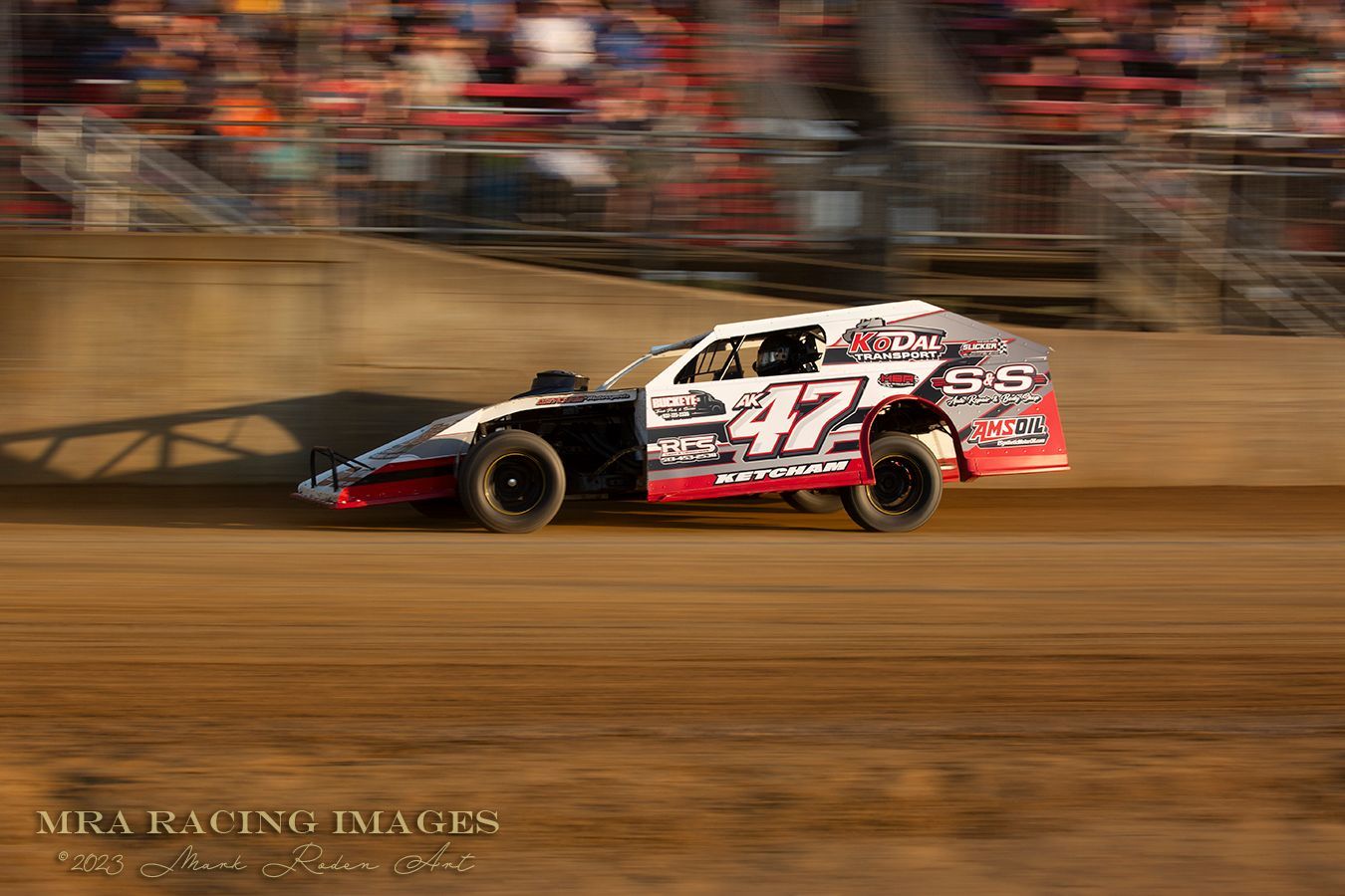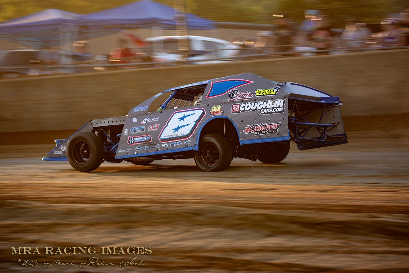 The other class running that night was the Modifieds class. These are longer and shorter, with bodies that flex as the car gets into a turn. They are fun to watch and even more fun to photograph, as they will give you several different “looks” depending on where they are on the track and how hard they are on the pedal. Here are some shots from the 3 heats: