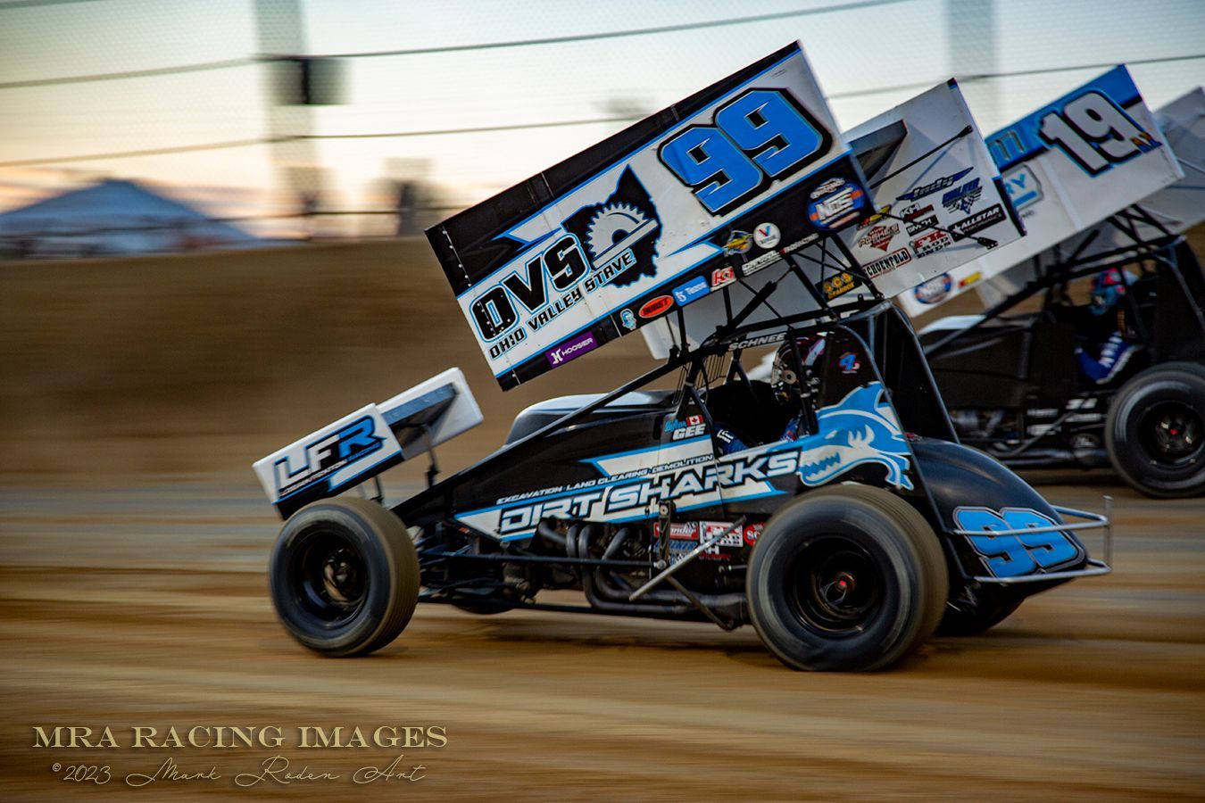 McFadden started from pole position with Sweet beside him and the Kofoid/Gravel duo right behind them to fill out the second row. As the race developed there was a caution drawn by Sheldon Haudenschild when his car shut off. He was pushed to the work zone outside of turn 4 where he had a 2-minute clock to make any repairs and either rejoin the field at the back or forfeit the race. As it turned out, he couldn’t get the car to fire again so that was the end of his night.