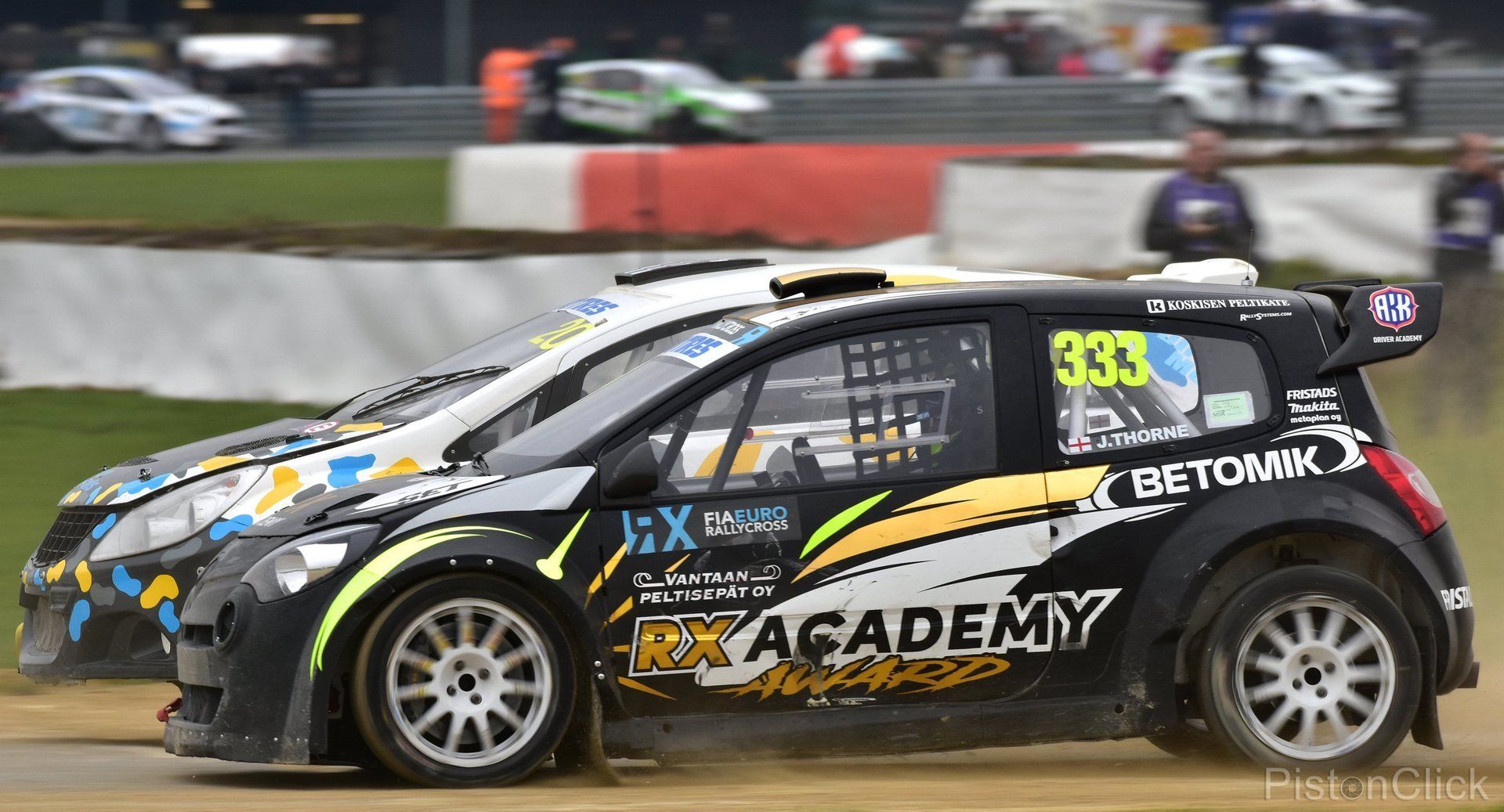 Higgins who is originally from the Isle of Man, dominated in the flying Peugeot 208 RX. Julian Godfrey in the equally acrobatic Mitsubishi Mirage was 6 seconds behind in second place in the final event.