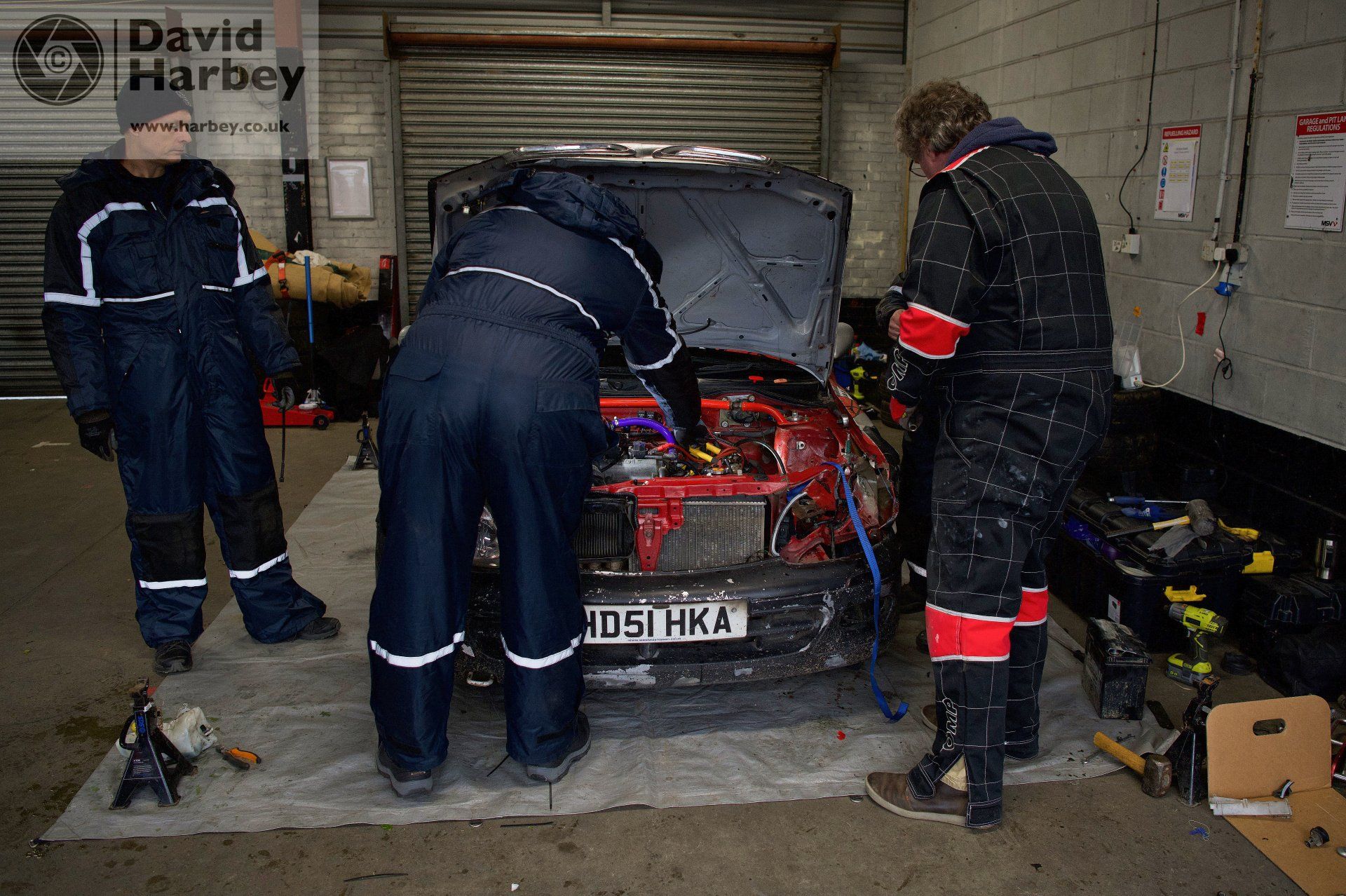 While I was engaged in some anger management straightening the battery plate with a club hammer, our usual service partner Andrew Lawson dashed across with a spare battery; sadly this proved too large for the now reduced space.