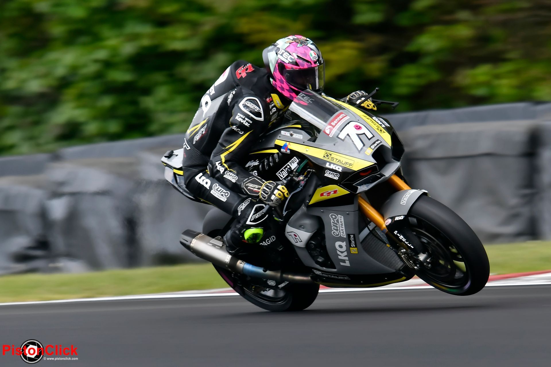 I took the road less travelled on my most recent visit and walked beyond the chicane as far as you can go to get a side on shot at Britten’s (K). There is slot to get the cars as they go through Island Bend or a rear shot as they head up to Hill Top.