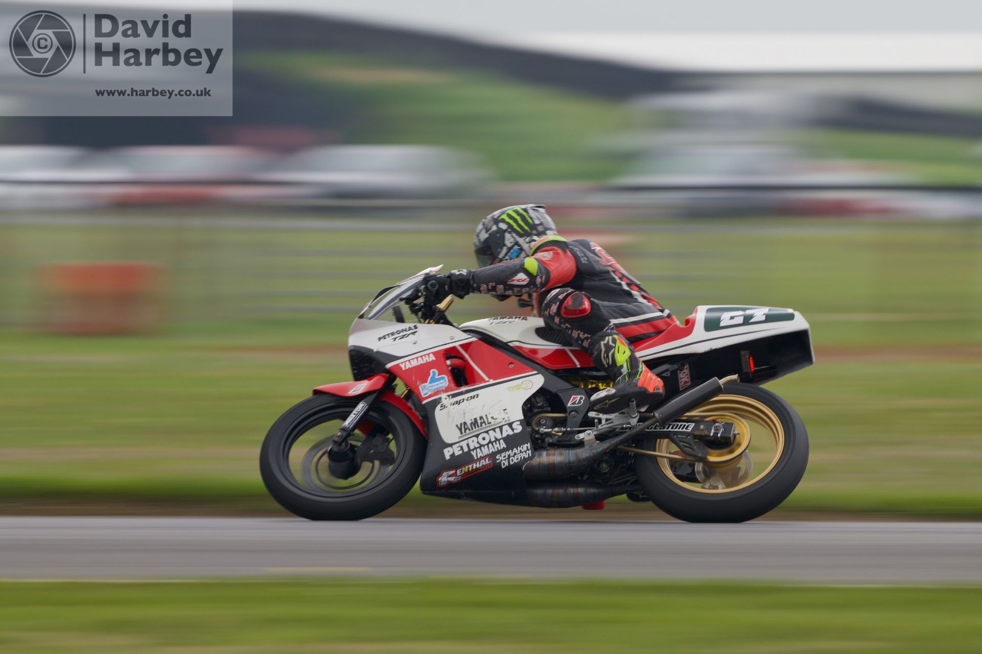 For some variety, I drove across the infield to the inside of the Bombhole (G). I only took a few shots here, but as you will see there is considerable scope for panning shots as the bikes head towards the Bombhole, or as they dive through it. I was using the 300mm prime here.