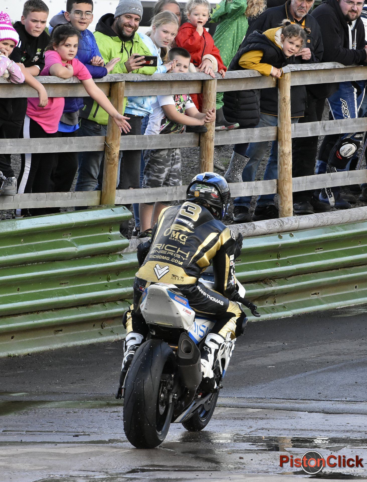 The race stared and Christian Iddon on the Buildbase Suzuki got a great start and took the lead. As the riders screamed past I tried to see what tyres they had chosen. It looked like a bit of a mix, slicks, cut slicks and possibly intermediates.