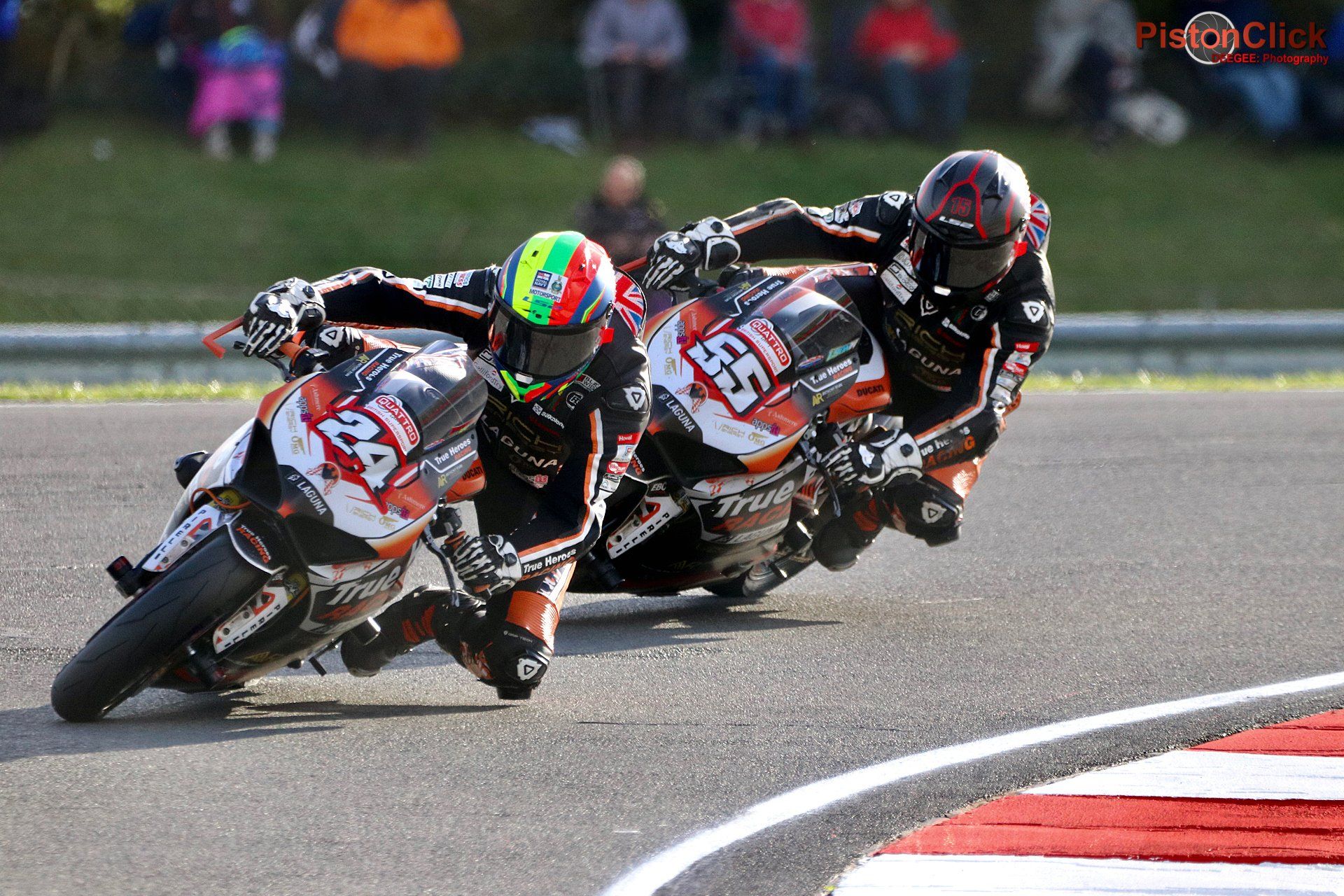 Leon Wilton #55 and Charlie White #24 both posted personal bests of 1:38.690 for Leon and 1:38.690 for Charlie in the Supersport class.