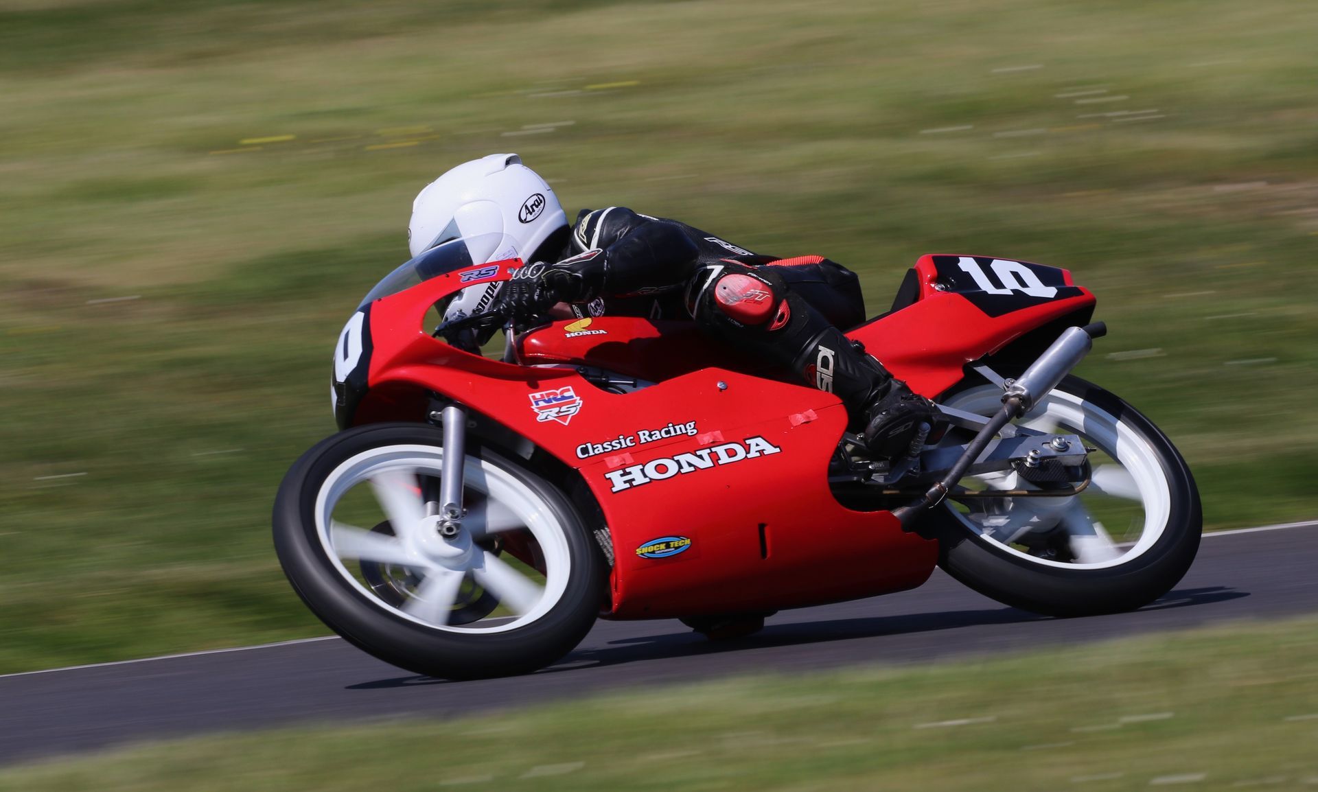 Fortunately, after being checked over by the circuit’s medics he was passed fit to race again, but his bike looked decidedly “second-hand”, and he was forced to use his “spare” bike in his final race of the weekend. Unfortunately, mechanical problems, revealing themselves as a plume of blue smoke, brought his race to a premature end, and he was black flagged.