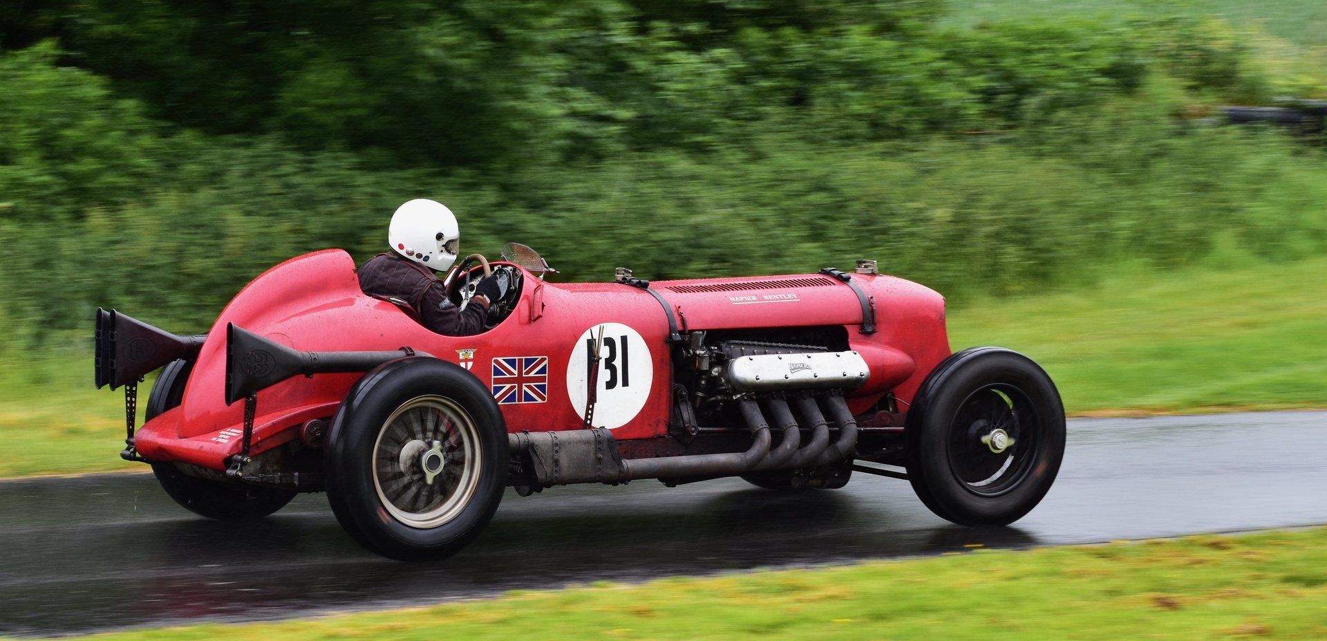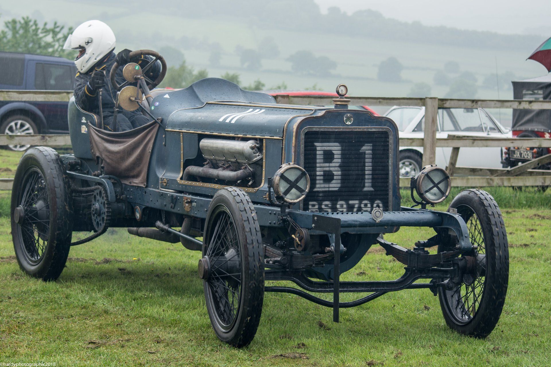 One advantage of photographing vintage cars is they don’t go very fast and as it was raining all day the drivers were taking it steady. When I say steady, one did launch its self into an adjoining field; on a good day the top cars can complete the course in less than a minute.