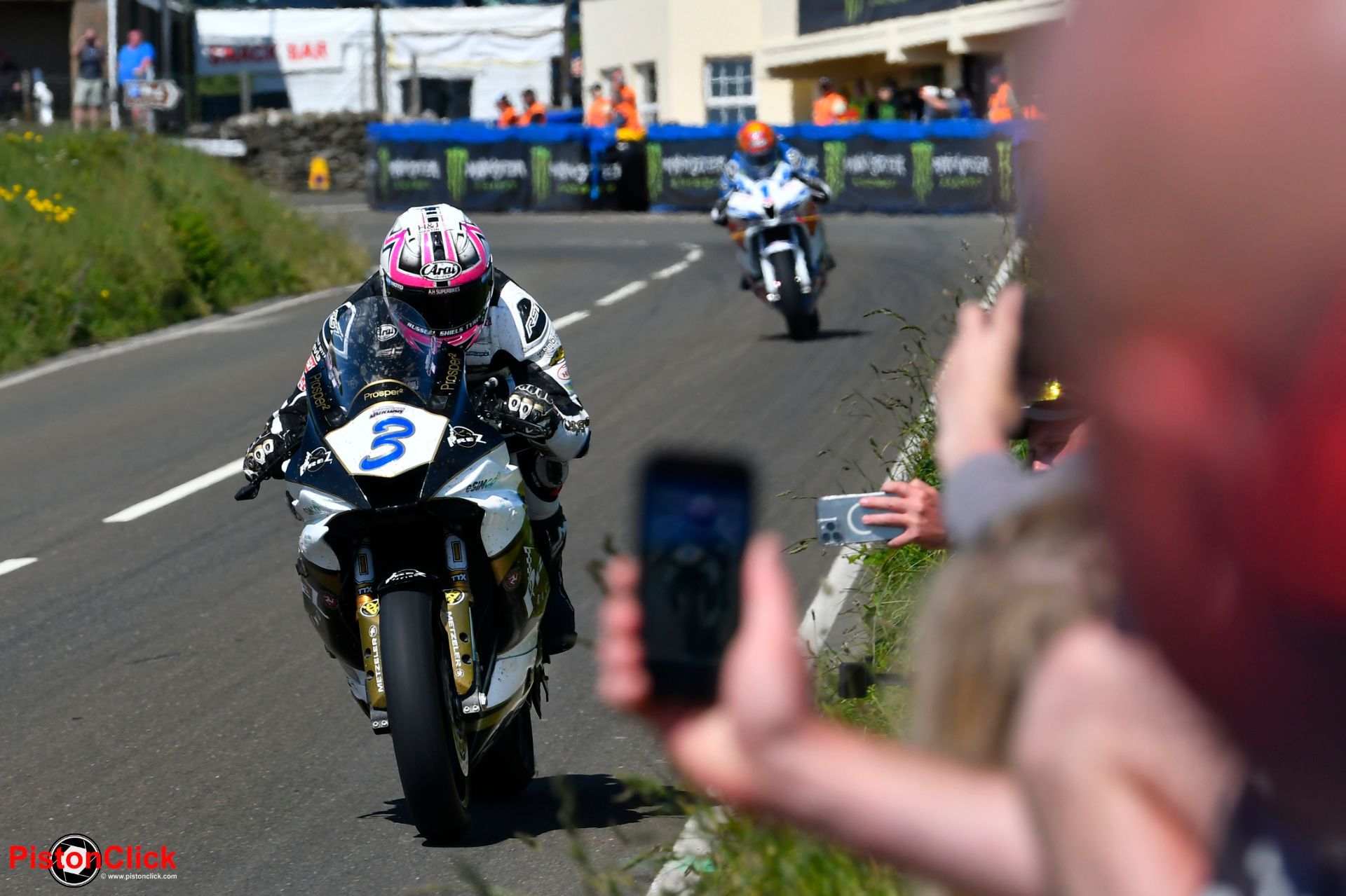 There are two types of accredited media at the TT - white bibs and host media which are blue bibs and who were everywhere and in large numbers. At one point there were eight people wearing blue bibs around Peter Hickman on the start line.
