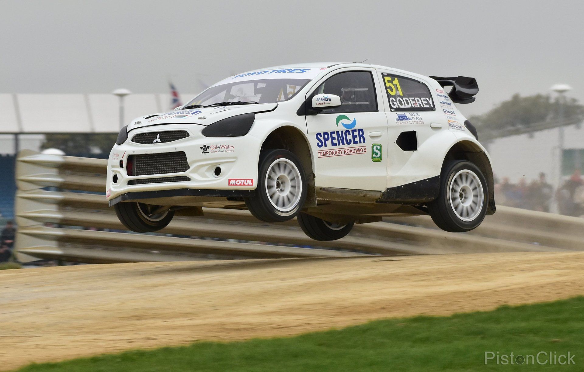 Higgins who is originally from the Isle of Man, dominated in the flying Peugeot 208 RX. Julian Godfrey in the equally acrobatic Mitsubishi Mirage was 6 seconds behind in second place in the final event.