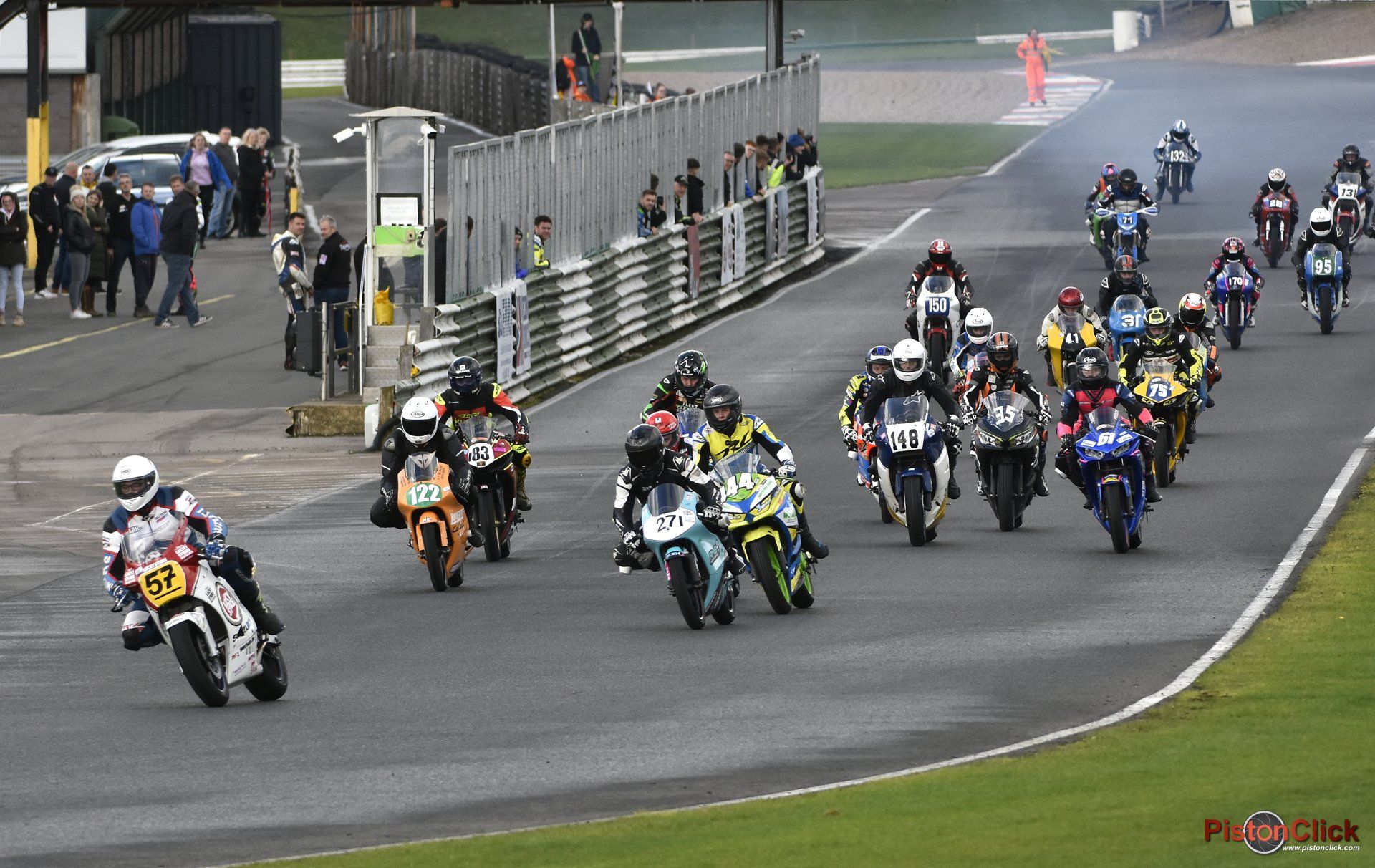 The race stared and Christian Iddon on the Buildbase Suzuki got a great start and took the lead. As the riders screamed past I tried to see what tyres they had chosen. It looked like a bit of a mix, slicks, cut slicks and possibly intermediates.