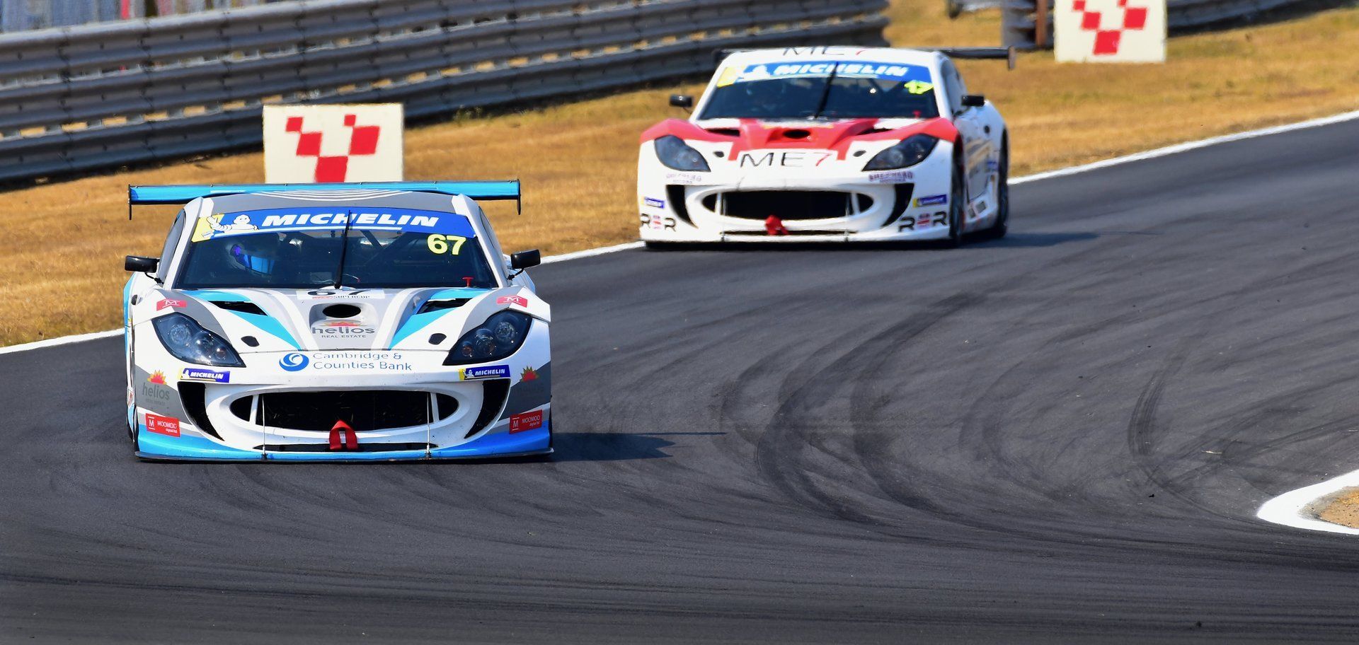 - A head on shot of the cars mid-way through Coram.