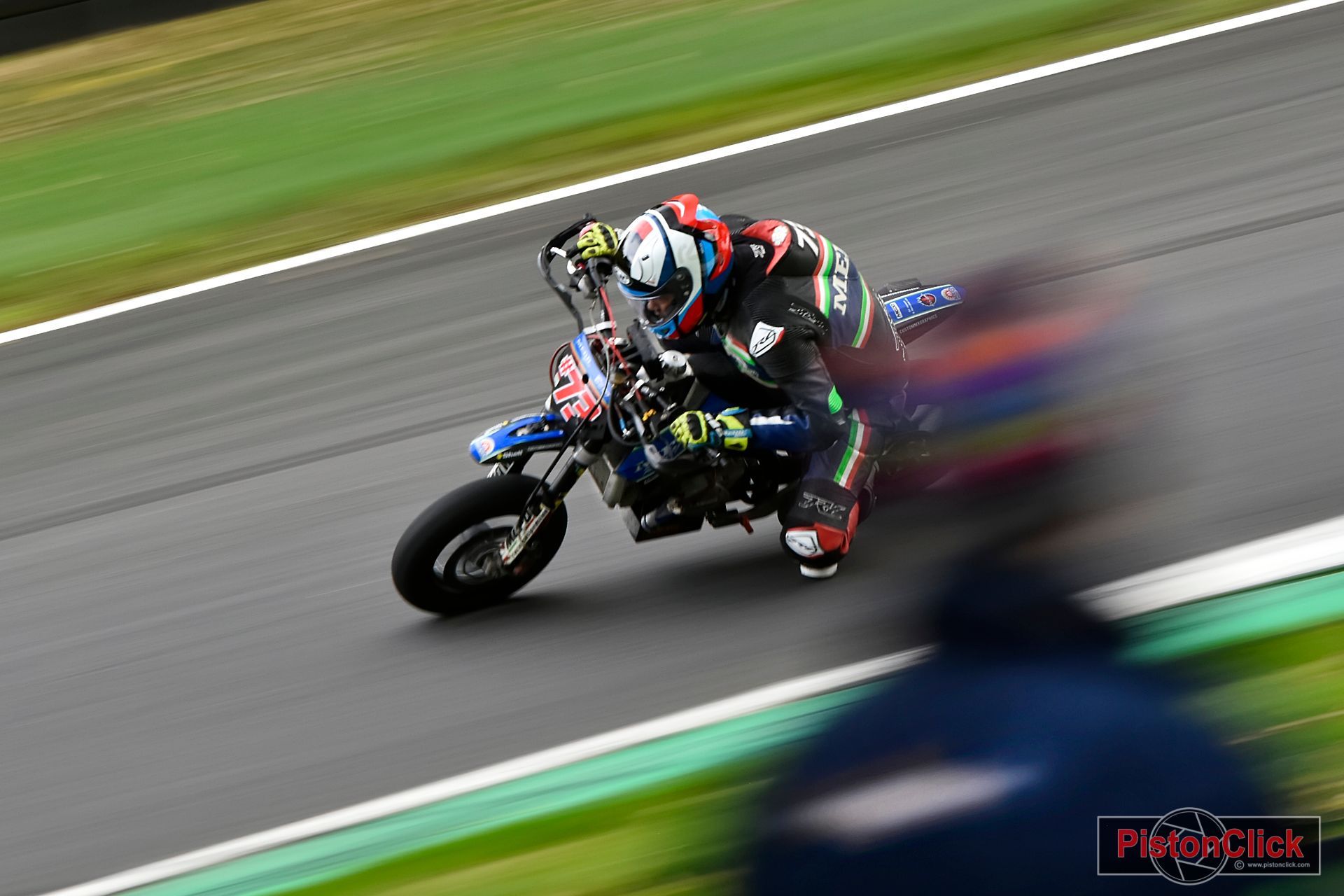 Combining road racing, flat track and elements of motocross Supermoto is a great action motorsport for the spectator photographer to experience. If the track allows you can get big jumps, close track racing and foot down off road action. First conceived to bring together different two wheel riders into one event, Supermoto is now a motorsport in its own right.