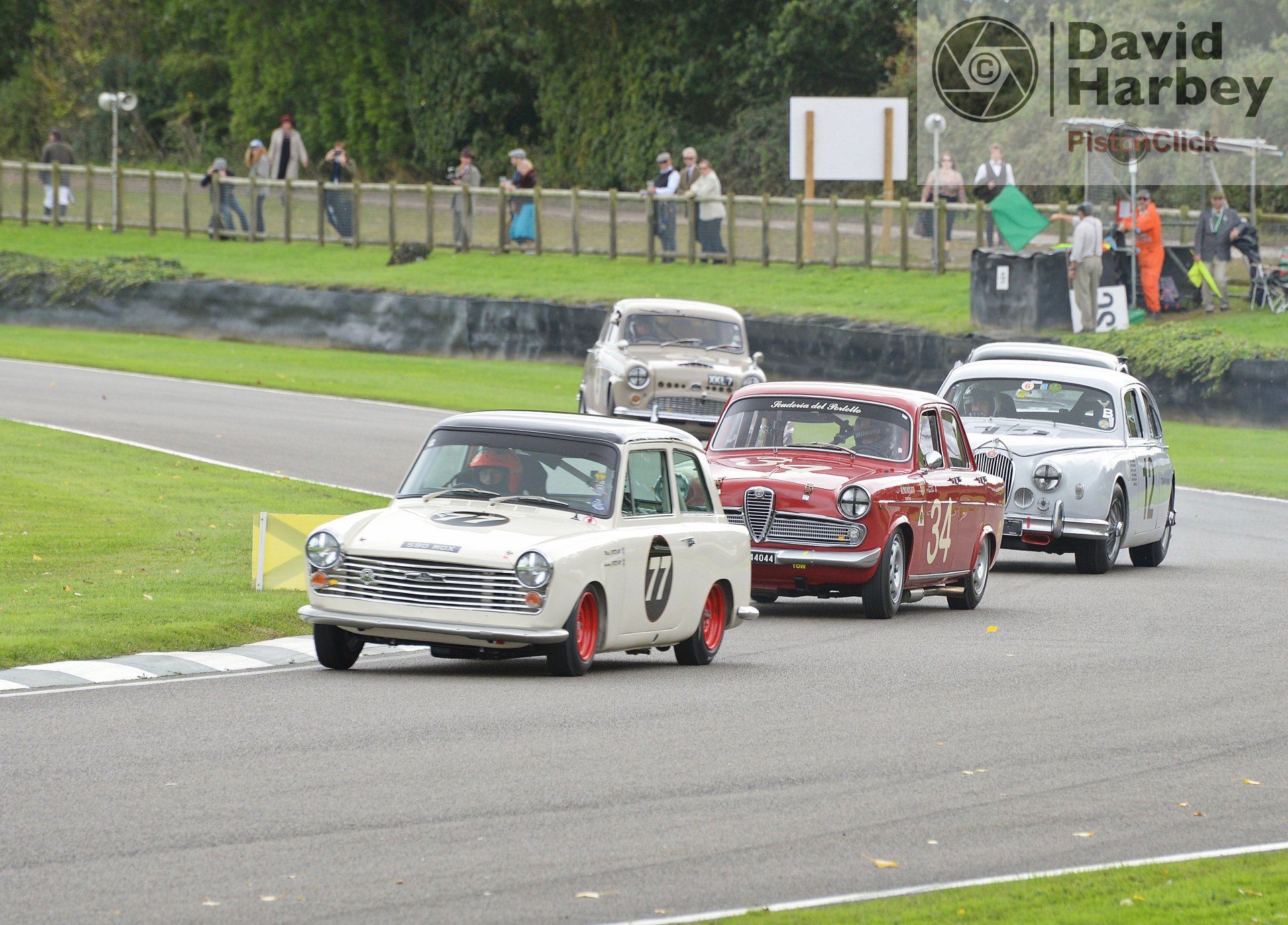 There’s always been close racing at the Revival and they do attempt to police the wilder moments – here the saloons in the Jack Sears Trophy go beyond the “rubbin’ is racing” motto whilst the Jaguar Mk 1 pairing of Justin Law and Grant Williams perform in unison.