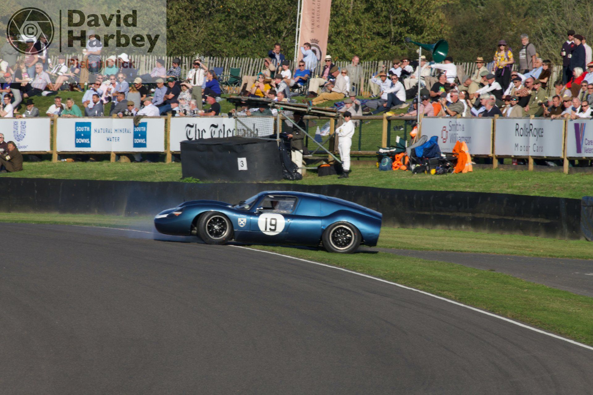 And so to the main attraction – the RAC TT Celebration for early 60s GT cars. At the exit of Fordwater there is often some front wheel waving to be seen. There is the added benefit of the crowd at Madgwick in the background.
